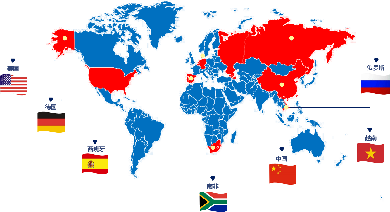 與德國、美國、西班牙、南非、俄羅斯、越南均有合作關系。